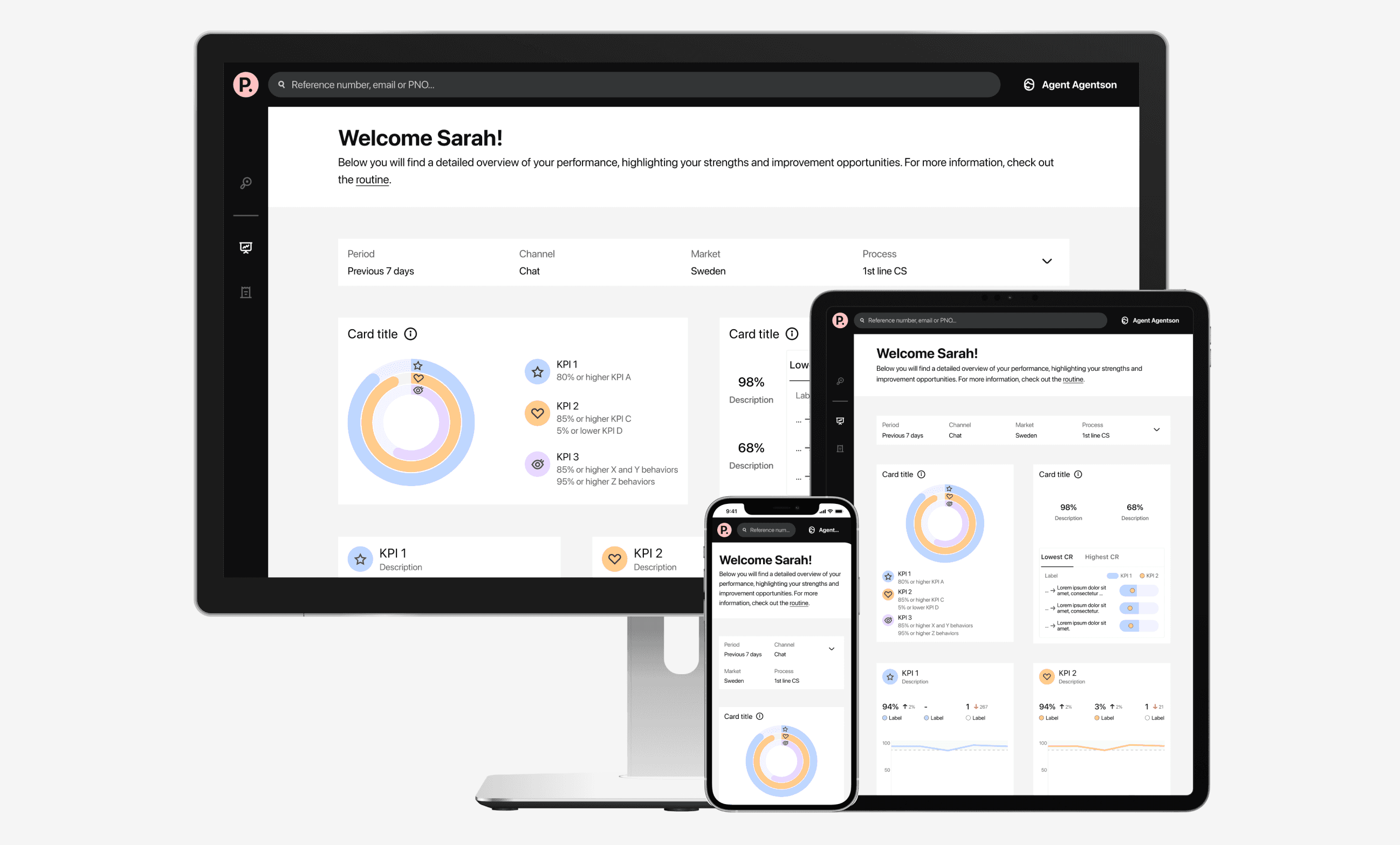 The iterations went hand-in-hand with the technical discovery to see what live data we were able to display to the agents and teamleads. With different high fidelity designs I also performed moderated usability tests and general feedback sessions with the focus groups to validate designs.